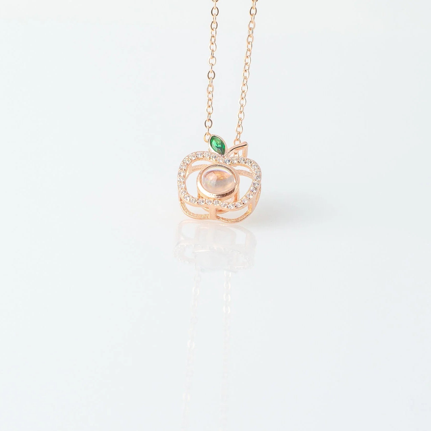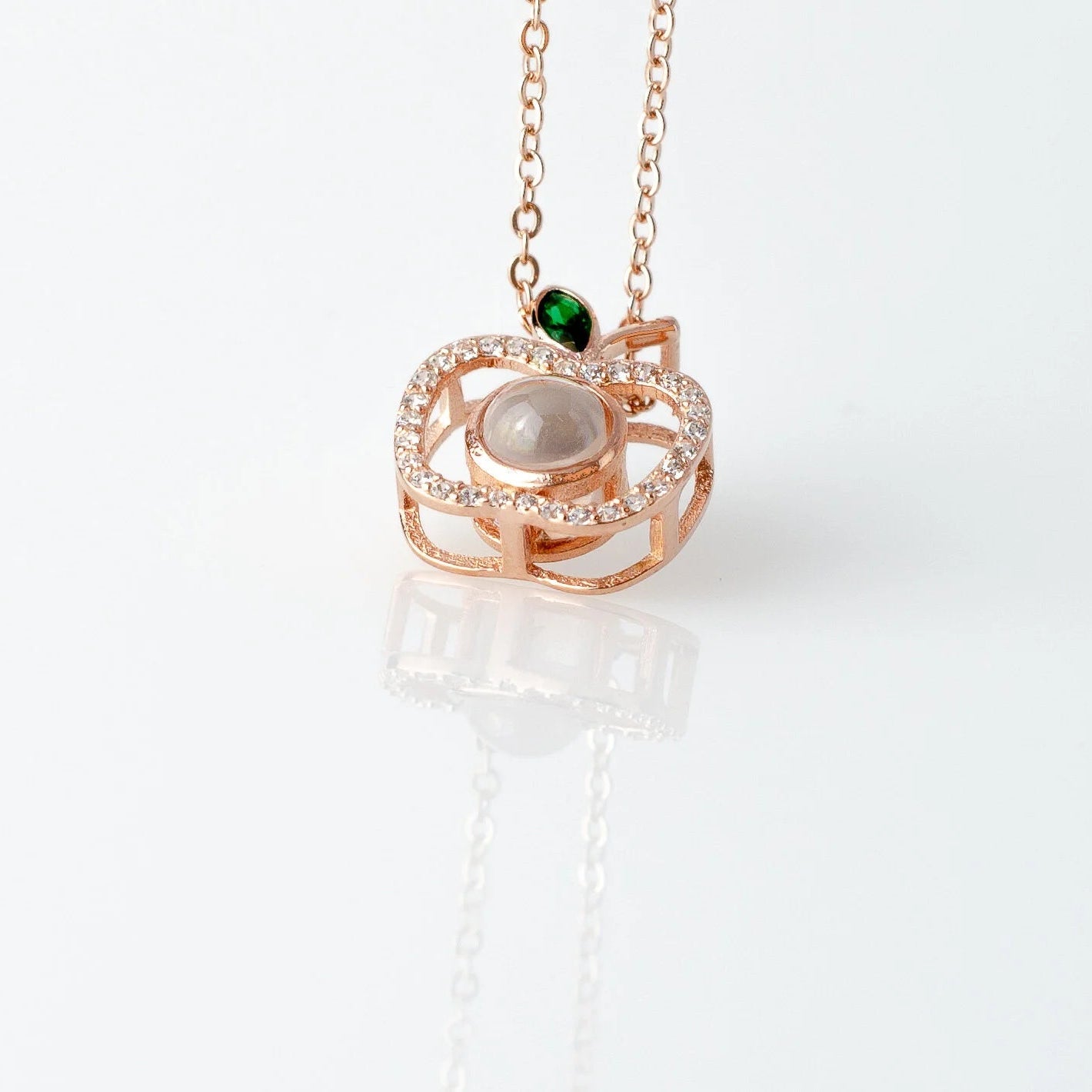Apple - 100 Languages I Love You Cubic Zirconia Pendant Sterling Silver Necklace, Gold Necklace, Cute, Mother's Day, Anniversary Gift