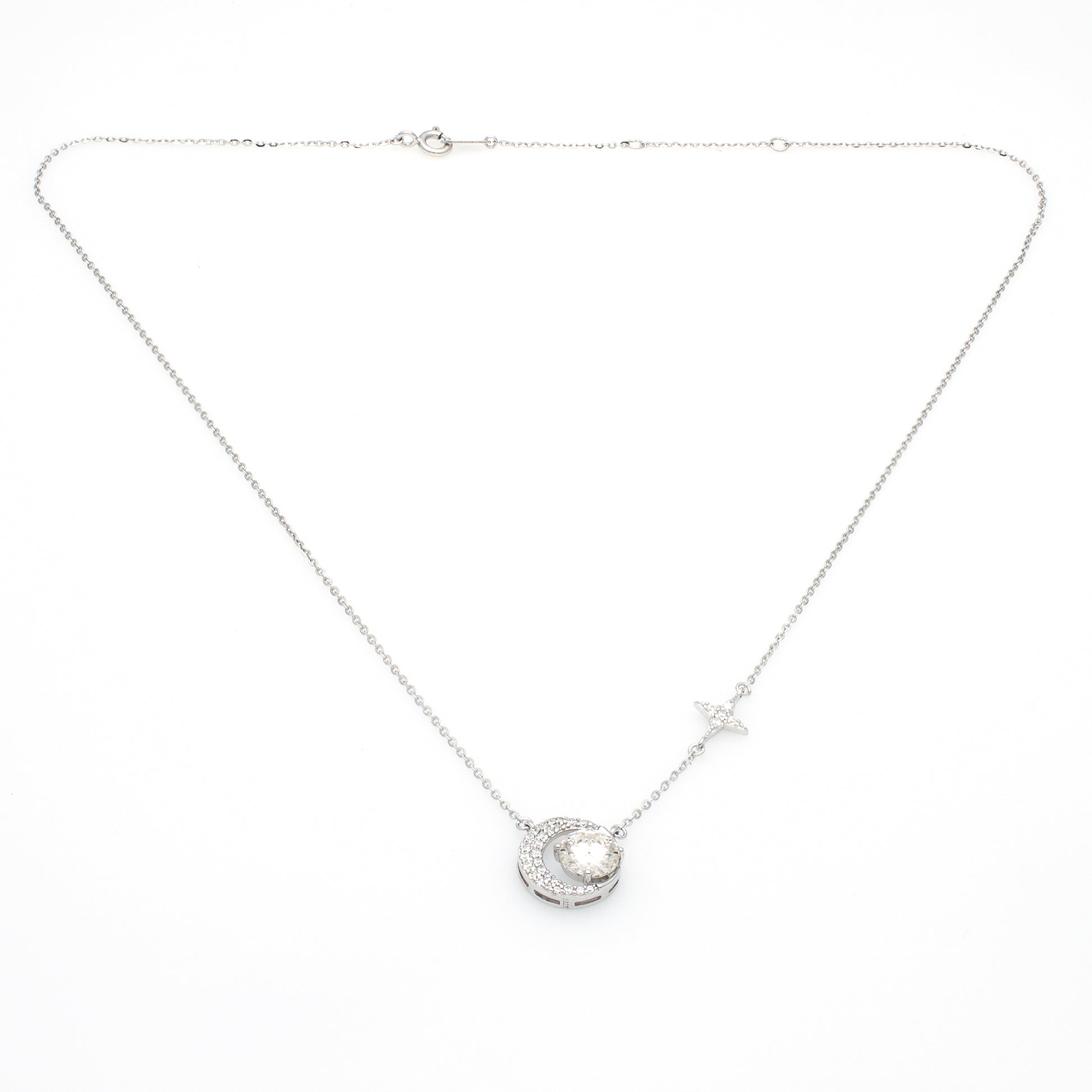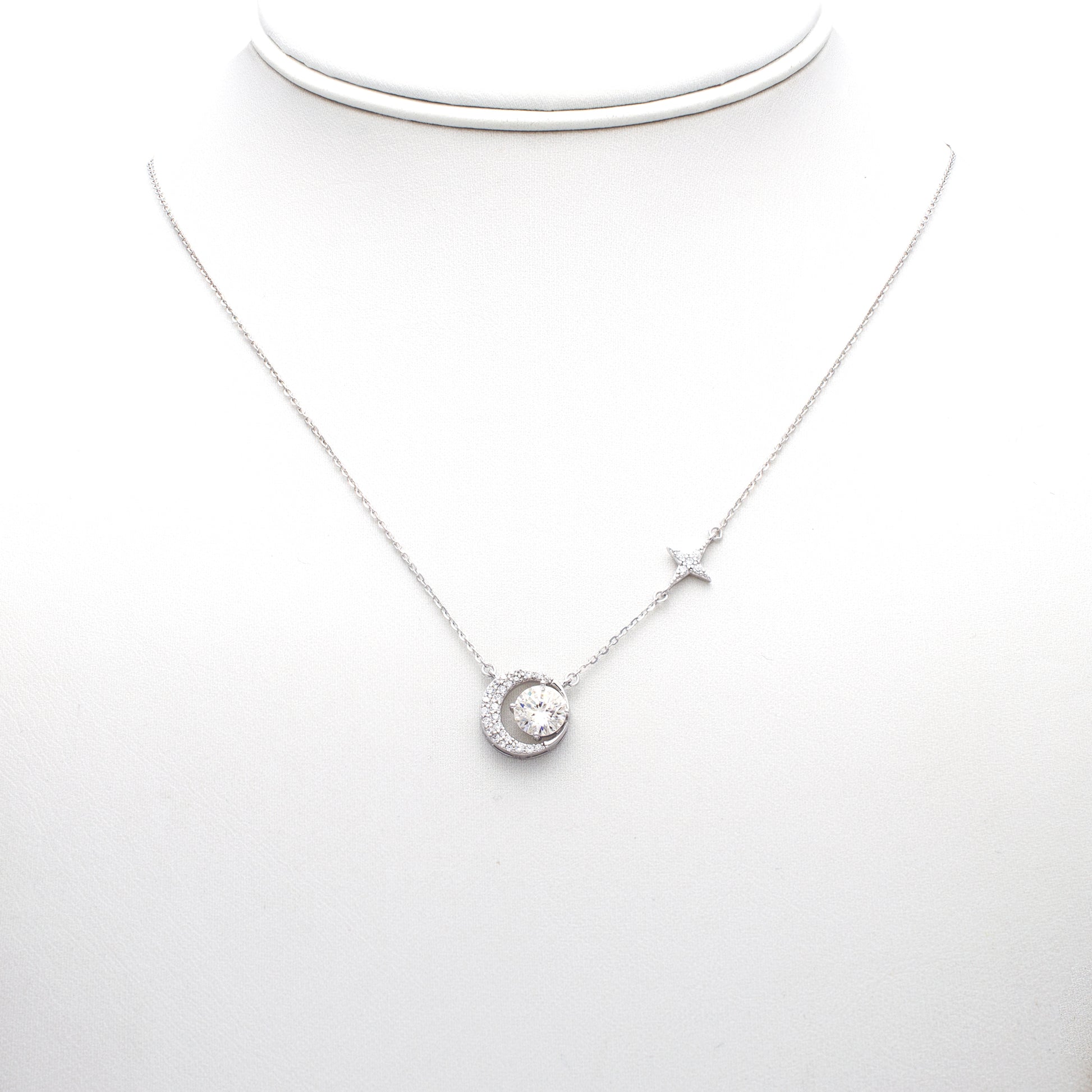 Inspired by the night sky, the Celestial Moon & Star Pendant Necklace is a dreamy piece that blends whimsy with elegance. The design features a sparkling crescent moon cradling a brilliant central stone, accented by a dainty star detail set asymmetrically along the chain.