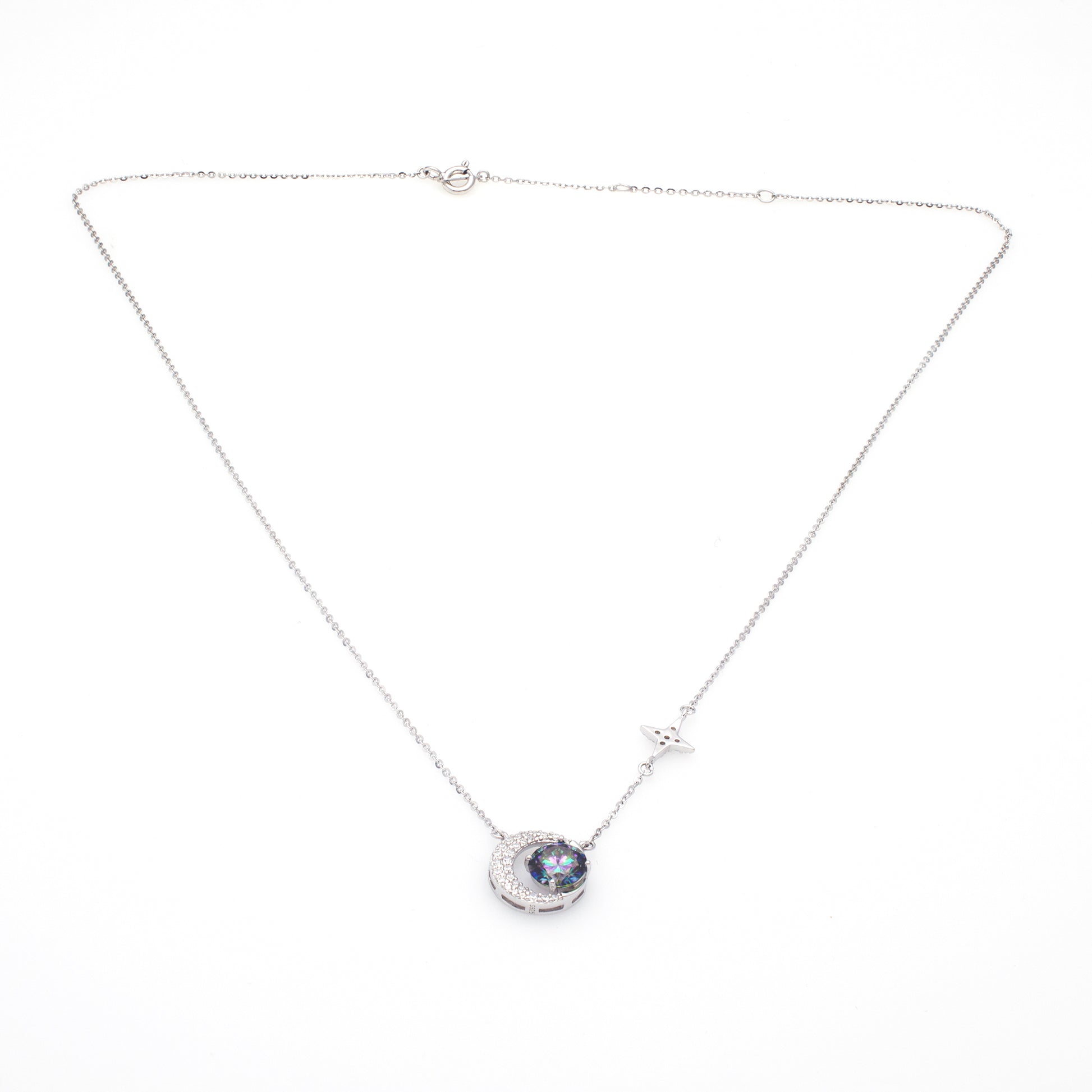Celestial Moon & Green Star Pendant Necklace in Sterling Silver