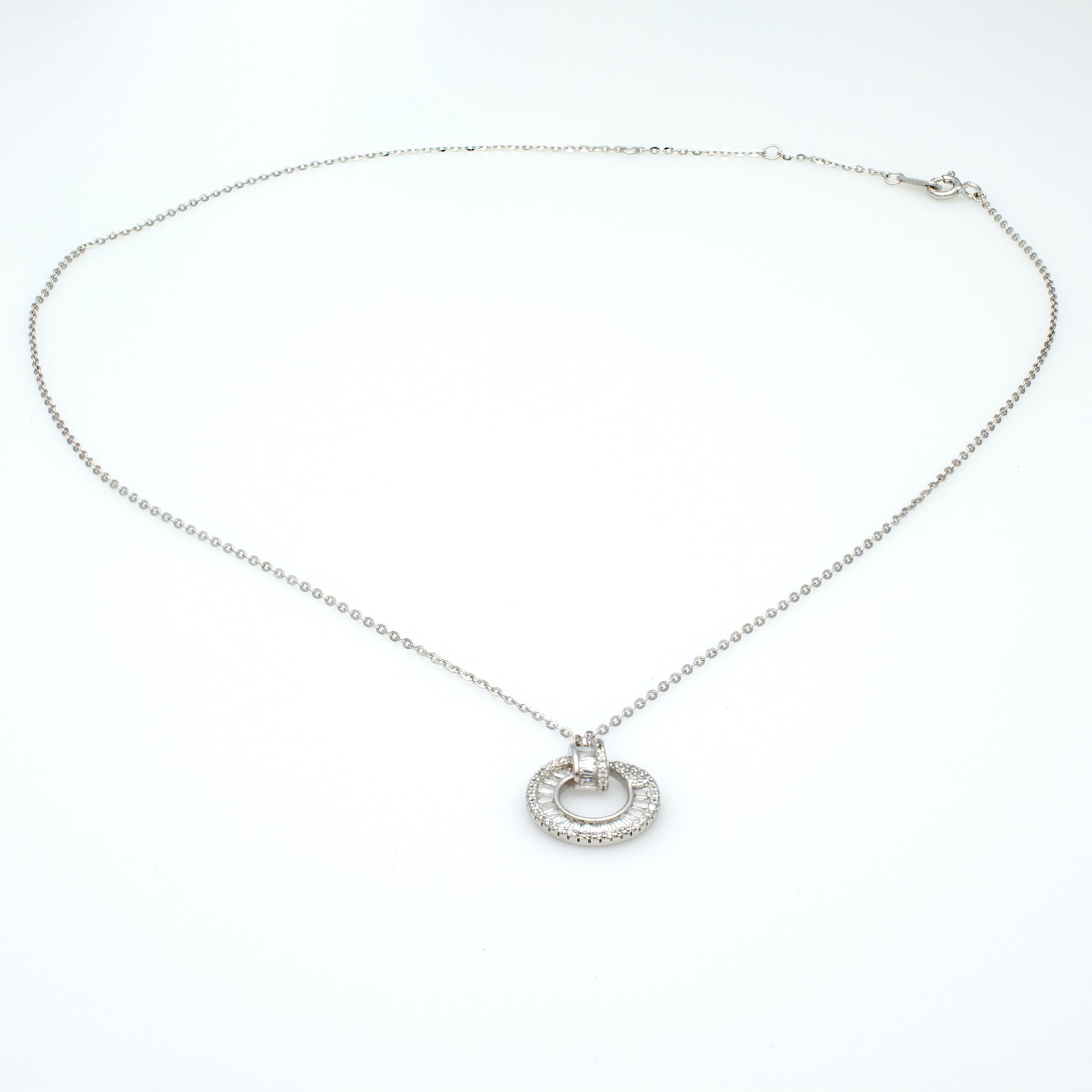 Classic Pavé Double Circle Pendant Necklace in Sterling Silver
