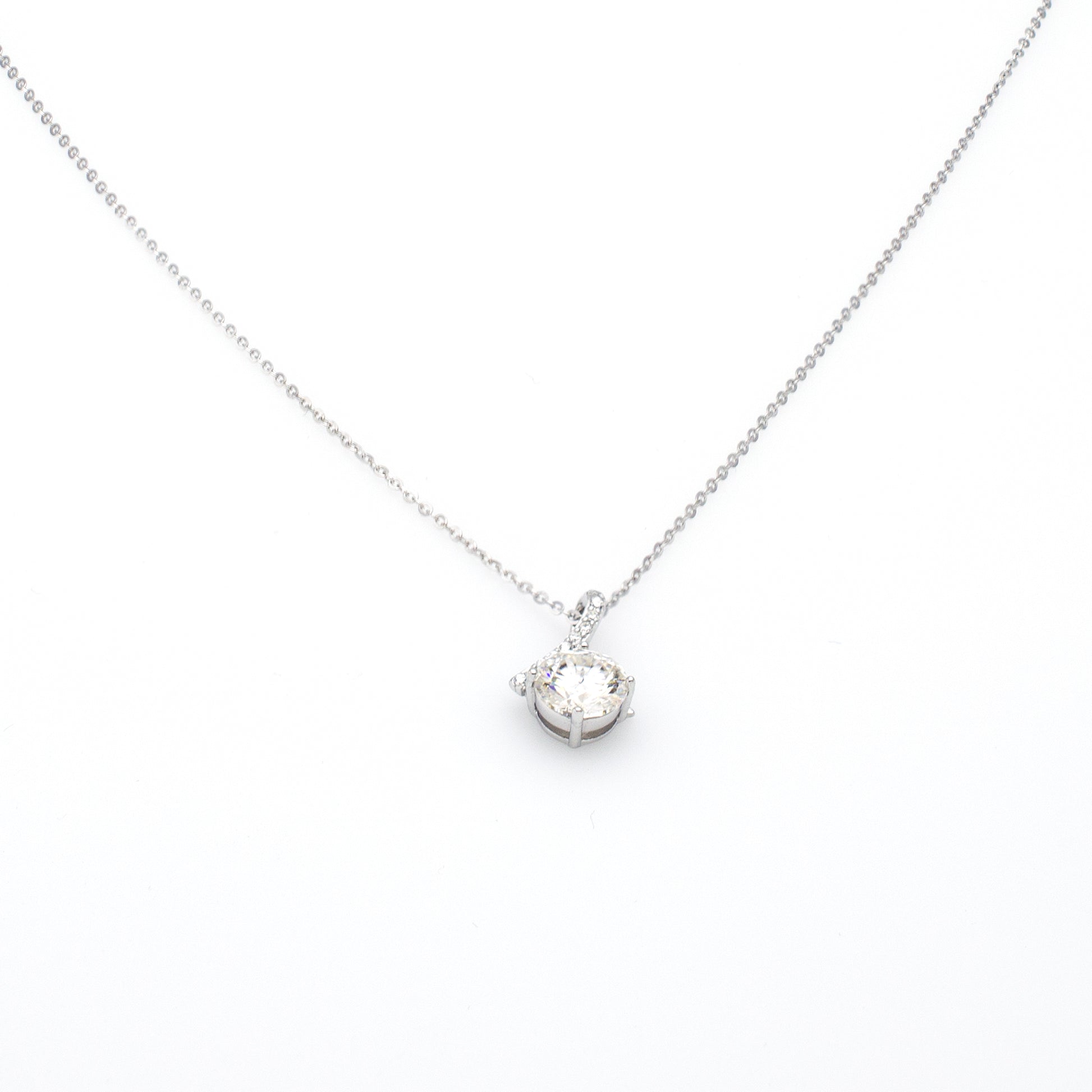 Timeless beauty meets everyday elegance in this Classic Solitaire Pendant Necklace. Featuring a brilliant round-cut cubic zirconia set in a refined four-prong setting, the pendant sparkles with clarity and sophistication. The centerpiece is flanked subtly by two smaller stones on each side, enhancing its brilliance without overwhelming the minimalist design.