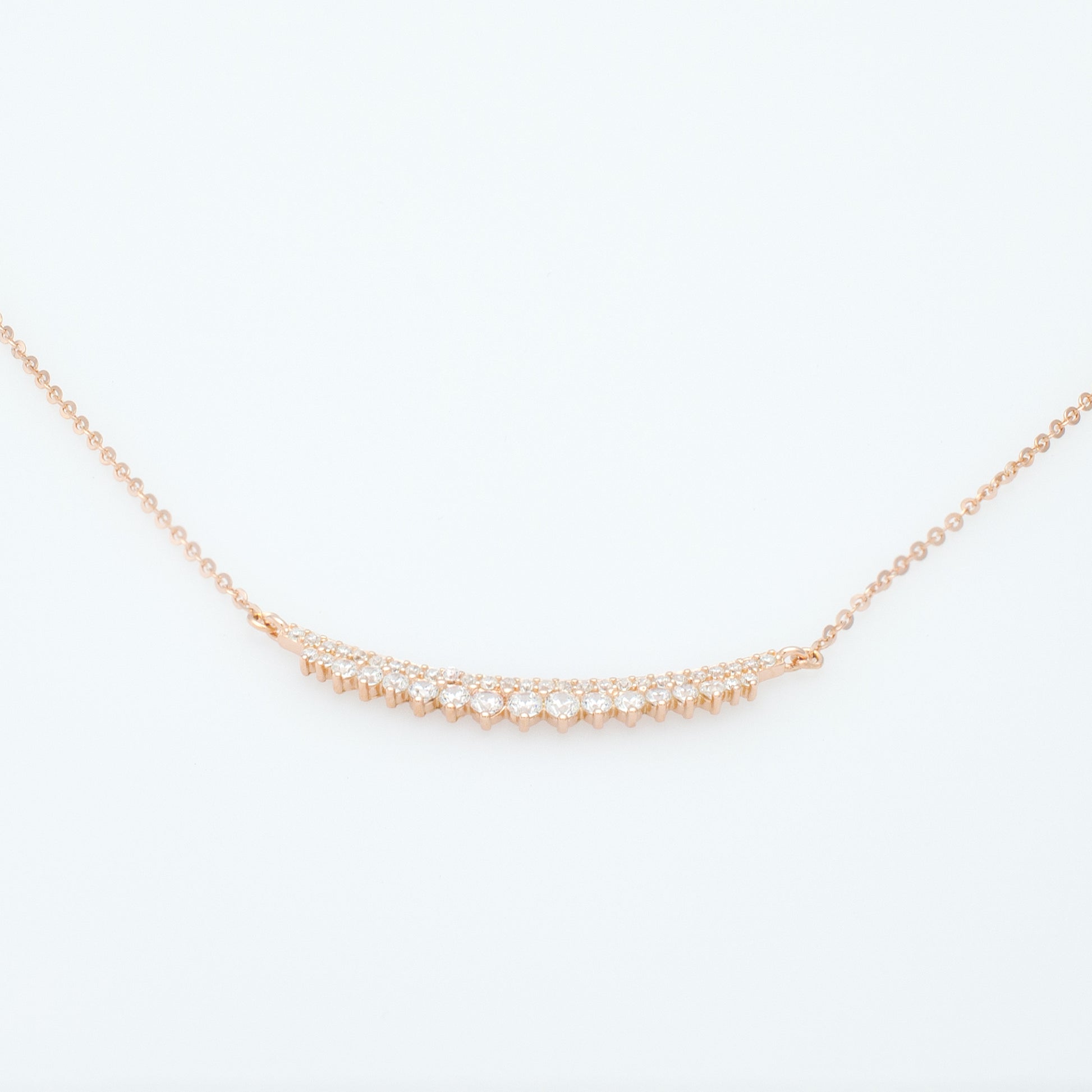 Elevate your elegance with this stunning Rose Gold Cubic Zirconia Bar Necklace. Featuring a graceful arc adorned with a row of sparkling cubic zirconia stone, this necklace offers timeless sophistication with a modern touch. The fine sterling silver chain adds delicate charm, while the secure spring-ring clasp ensures comfortable, all-day wear.