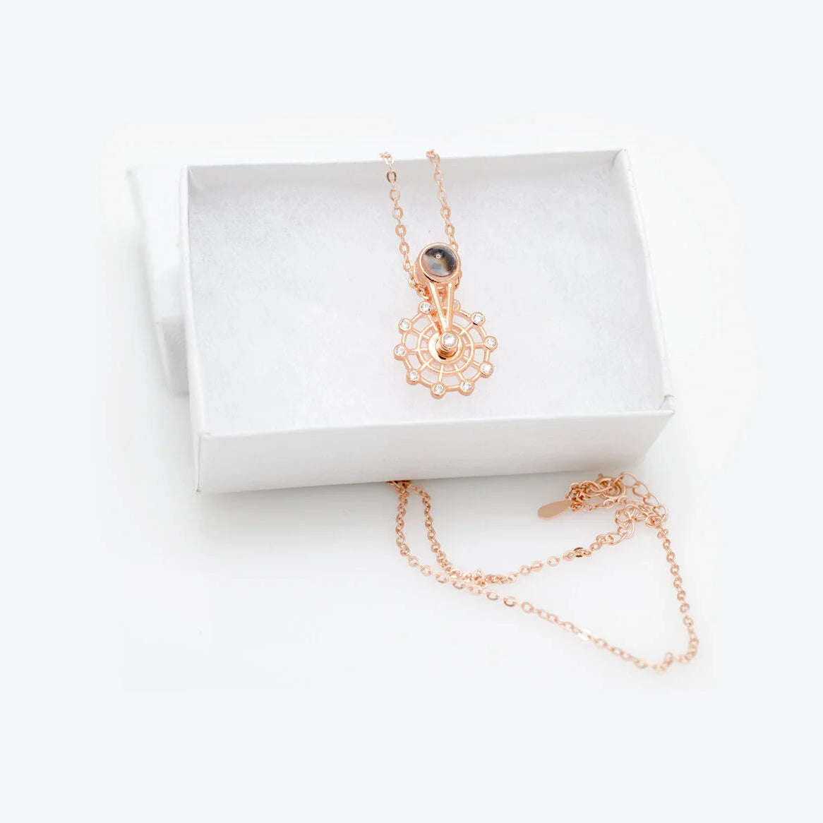 Ferris Wheel Silver Necklace - 100 Languages I Love You Cubic Zirconia Pendant Sterling Silver Necklace. Great Wheel Silver Necklace
