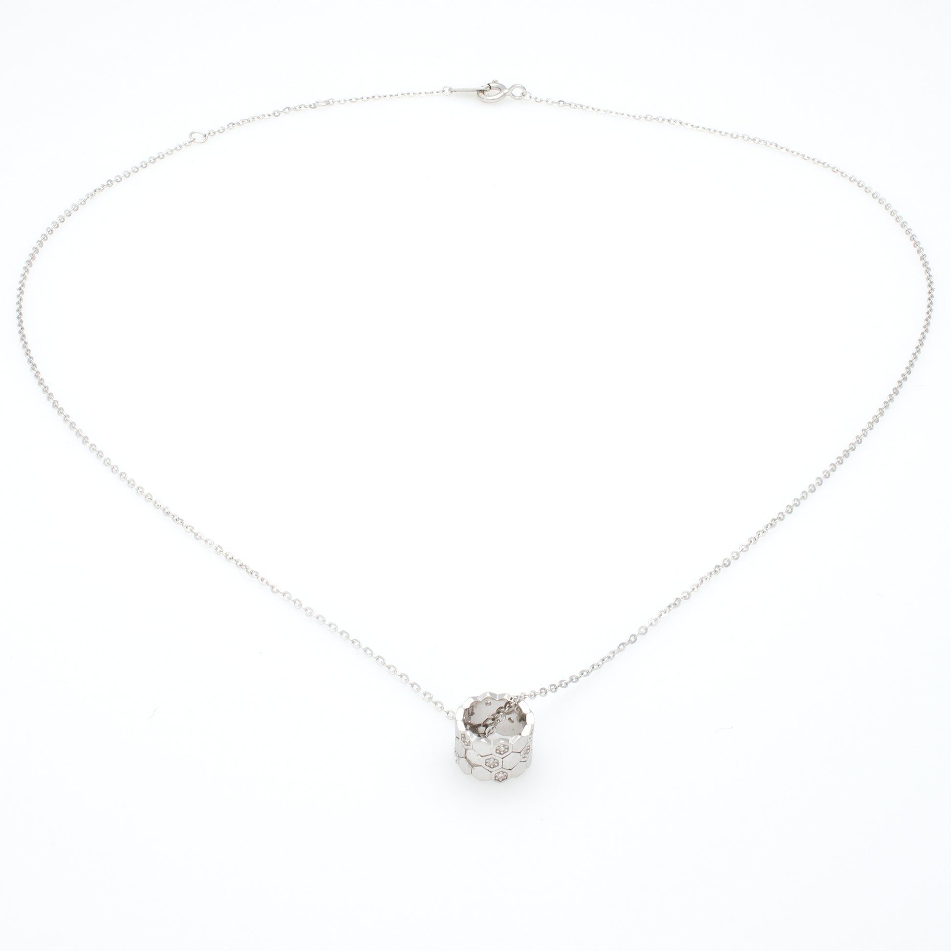 Elegant with a geometric twist, this Floral Hexagon Barrel Pendant Necklace in polished silver brings a contemporary edge to classic floral motifs. The unique barrel-shaped charm features a honeycomb-inspired pattern engraved with delicate floral accents, enhanced by subtle cubic zirconia stones that shimmer with understated grace.
