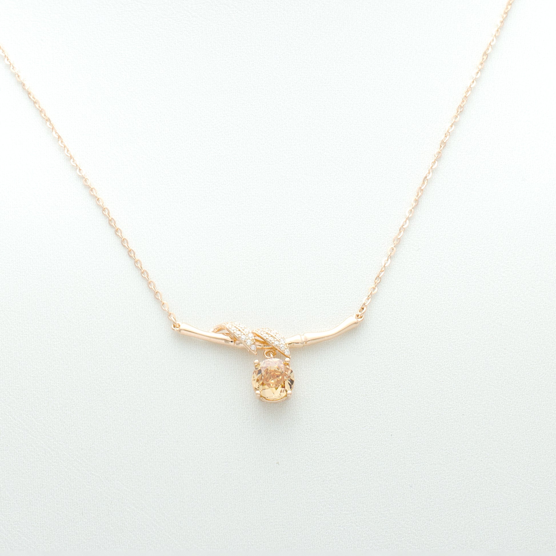Pink/Citrine Cubic Zirconia Bamboo-Inspired Pendant Necklace