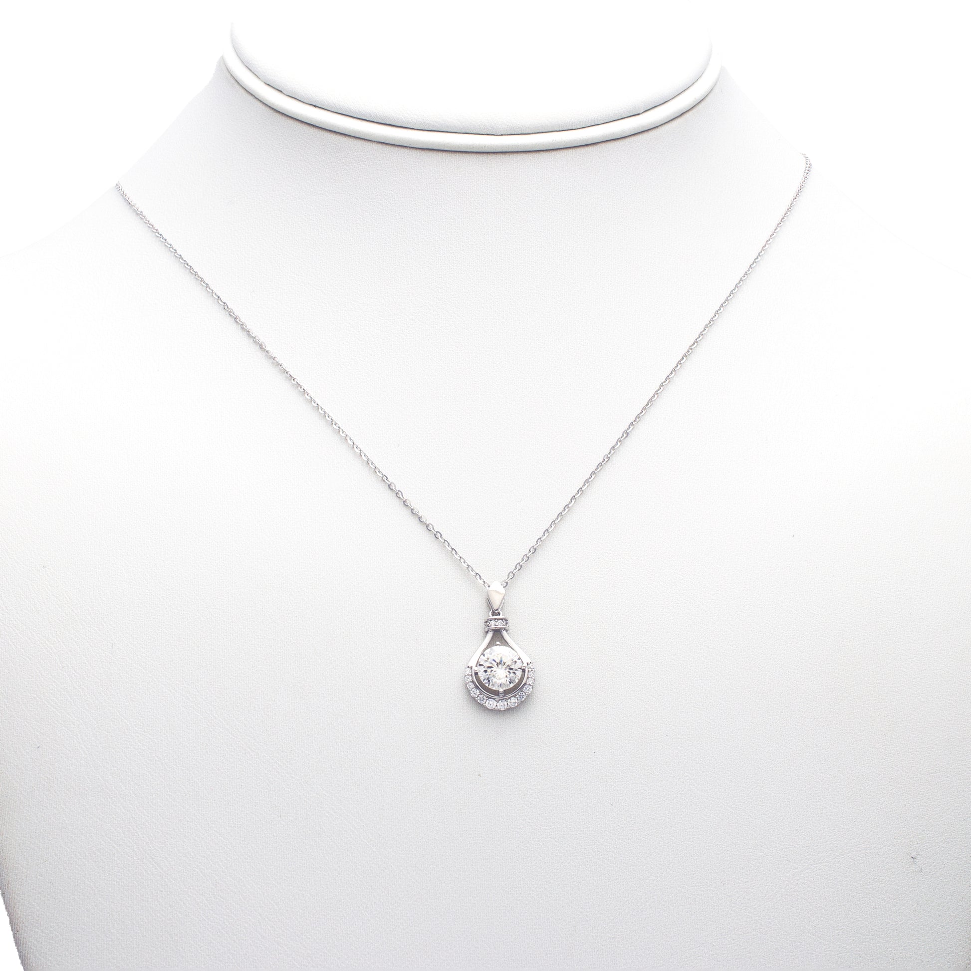 Elegant and timeless, this Sparkling Silver Teardrop Necklace features a round brilliant-cut stone cradled by a gracefully contoured teardrop halo. The pendant is encrusted with a delicate row of pave-set cubic zirconia that adds brilliance from every angle. Suspended on a dainty silver bead chain, this necklace effortlessly blends classic charm with a touch of modern shine.